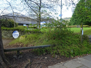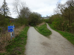 Behind the pool you will see much more obvious signage to the right on the old Keswick Railway Path.