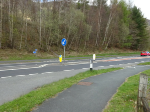 Go through the gate at the top of the rise BUT TAKE GREAT CARE. This is the main road out of Keswick towards Ambleside and Windermere and also towards Penrith. It can therefore be busy. In particular the cars coming down the hill may be going too fast for the 30mph limit.